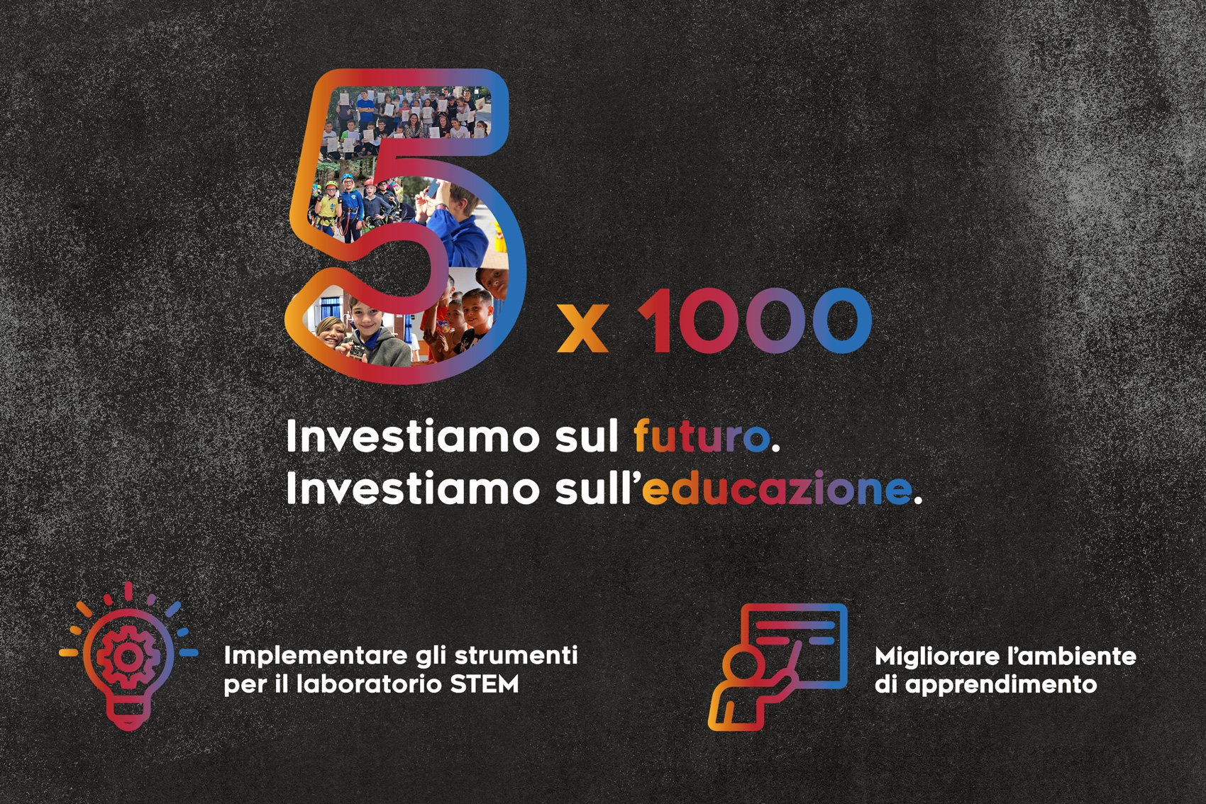 È sufficiente inserire il codice fiscale 01508140272 nella tua dichiarazione dei redditi: una scuola migliore per un futuro migliore per i nostri figli: con il 5×1000 puoi contribuire anche tu!